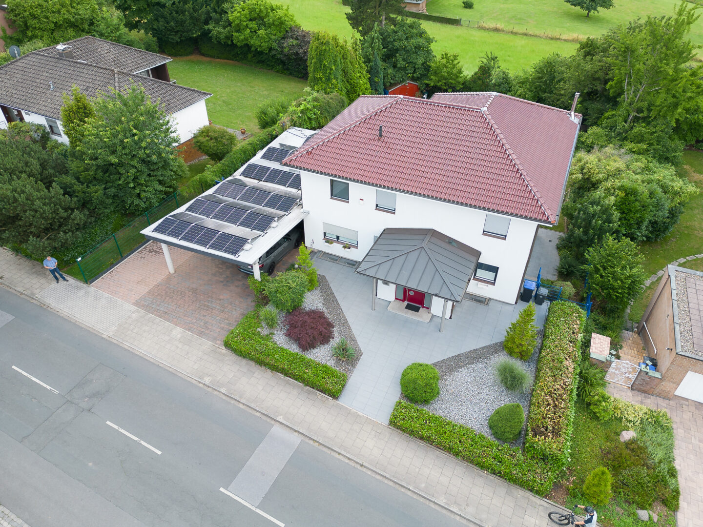 Ladeinfrastruktur zum Laden von Elektrofahrzeugen steht zur Verfügung. Diese kann sowohl in der Garage als auch von den vier Stellplätzen vor der Garage bzw. unter dem Carport genutzt werden.