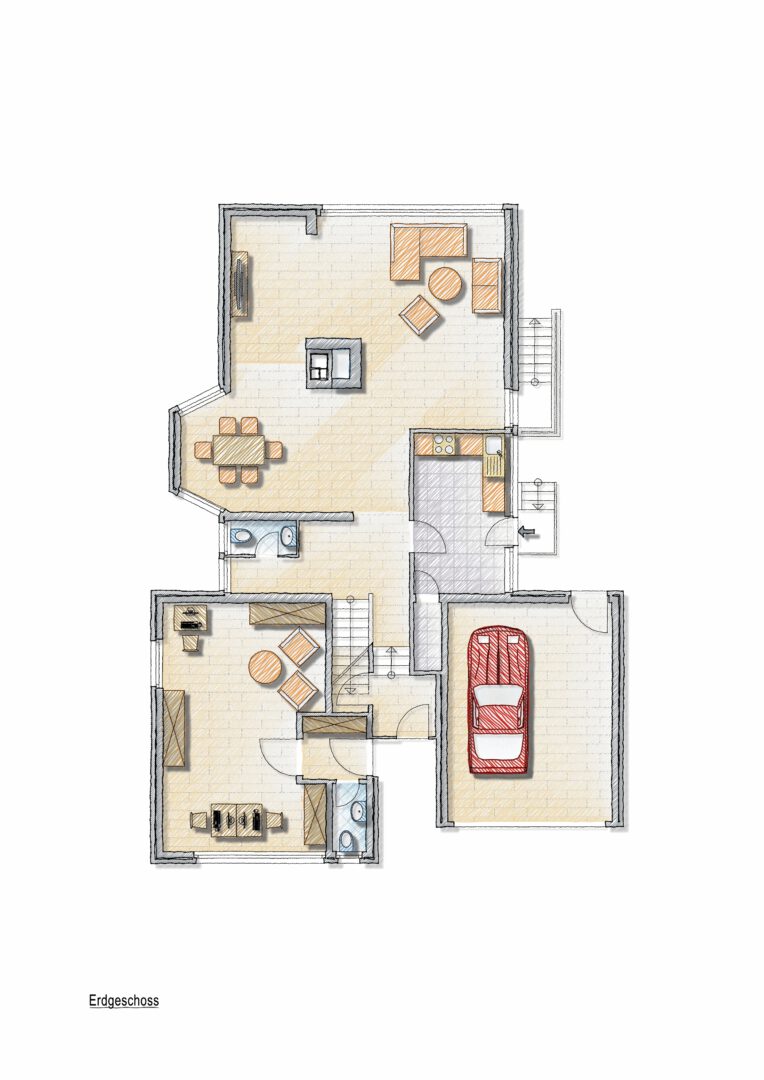 - Separate Büroeinheit mit eigenem Eingang – auch als Einliegerwohnung nutzbar